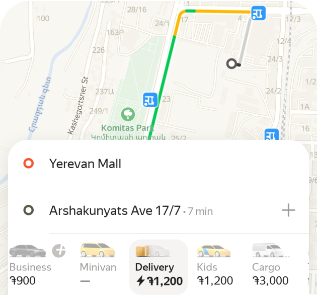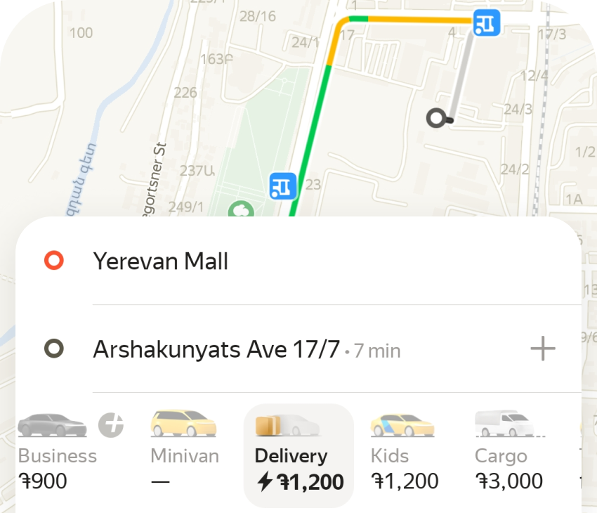Delivery users can order cargo delivery in Yerevan.