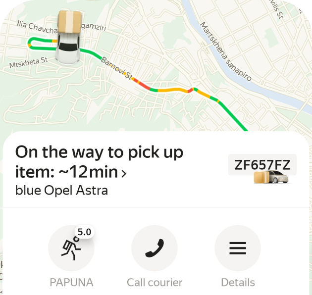 You can use the Yandex Go app to track where your driver is. The recipient