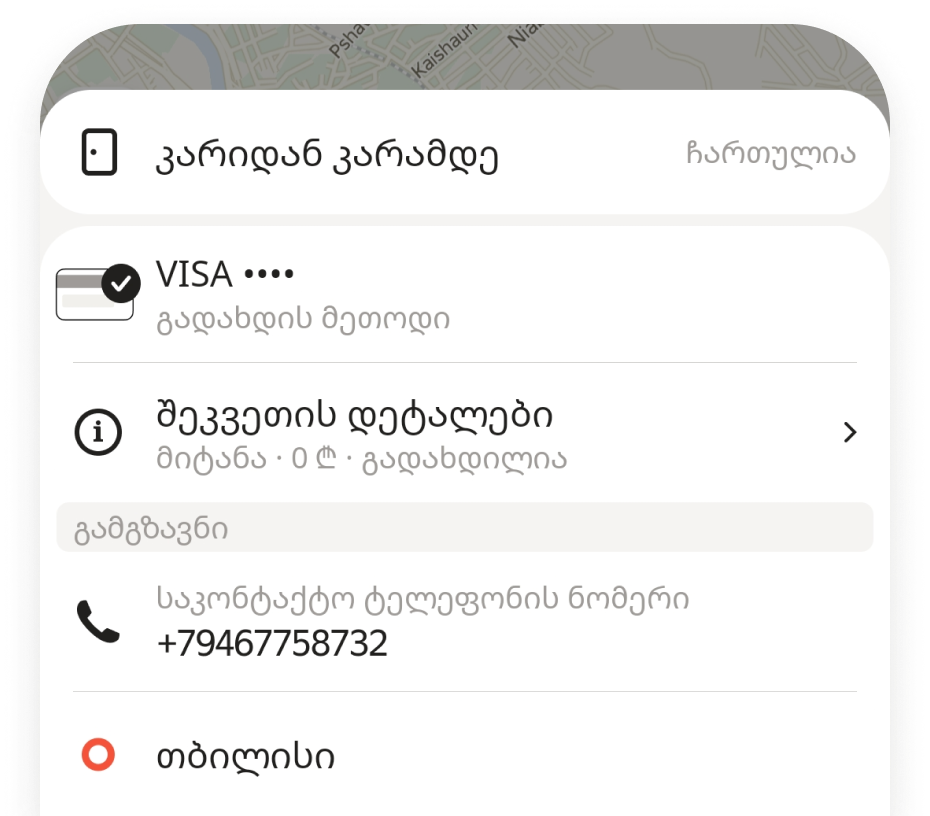 აპლიკაციაში, შეკვეთის ეკრანზე